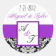 Adesivo Redondo Vinheta Damasco para Casamento Preto Roxo