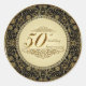 Um Design de Digitalbcon Images que apresenta um tema dourado e preto com uma variedade de imagens, formas, padrões, estilos e fontes personalizadas neste adesivo "Aniversário de Casamento de Ouros" monocêntrico. Esse design elegante e atraente faz o acessório perfeito para adicionar os toques finais a programas, convites e decorações de eventos.