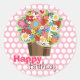 Adesivo Redondo Vinheta de Aniversário das Flores de primavera Whi