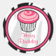 Adesivo Redondo Vinheta de Aniversário do Cupcake Rosa - Impressão