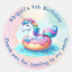 Adesivo Redondo Vinheta de Aniversário do Partido da Piscina Unicó