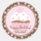Adesivo Redondo Vinheta de aniversário feliz do Cupcake rosa