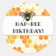 Uma abelha sobre um fundo de mel com o ditado "HapBEE Birthday"