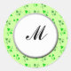 Um adesivo monograma personalizado com um simples padrão elegante de shamrock em verdes irlandeses com trevas de três folhas. Clique em Personalizar para adicionar seu nome ou mensagem personalizada, alterar as cores de fundo e muito mais.