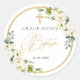 Adesivo Redondo Vinheta de Batismo Cruzado de Rosas Brancas