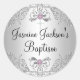Adesivo Redondo Vinheta de batismo de joias cinzentas e prateadas