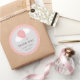 Tinta redonda para o favor de aniversário com design de balão de ar quente cor-de-rosa e fundo polkadot.