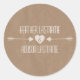 Um adesivo de casamento ao ar livre com ilustração de um coração entre duas setas. O fundo é de papel marrom inspirado. Personalize o texto com seus nomes.