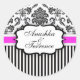 Adesivo Redondo Vinheta de Casamento com Stripe de Damasco Preto e