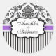 Adesivo Redondo Vinheta de Casamento com Stripe de Damasco Preto e