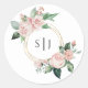 Adesivo Redondo Vinheta de Casamento de Monograma Branco Blush Flo