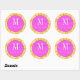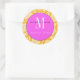 Adesivo Redondo Vinheta de Casamento de Monograma Rosa-Damástico L