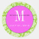 Adesivo Redondo Vinheta de Casamento de Monograma Rosa-Rosa-Damasc