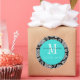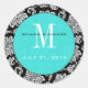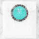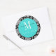 Adesivo Redondo Vinheta de Casamento do Monograma com Damasco Negr