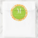 Adesivo Redondo Vinheta de Casamento do Monograma Verde Laranja Da