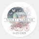 Vinhetas de casamento de fadas de floresta encantadas ou adesivos para envelopes, com uma carruagem de casamento mágica de cor aquosa