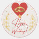 Vinheta de casamento feliz decorada por dois anéis de ouro, estrelas de ouro e flores amarelas