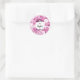 Adesivo Redondo Vinheta de Casamento Floral, Rosa Monocromática,