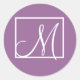 Adesivo Redondo Vinheta de Casamento Inicial do Monograma Roxo Ele