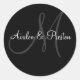 Adesivo Redondo Vinheta de Casamento Preto e Branco Monograma Eleg