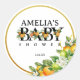 Adesivo Redondo Vinheta de Chá de fraldas de Citros Dourados Elega