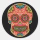 Adesivo Redondo Vinheta de crânio de açúcar vermelho