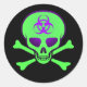 Adesivo Redondo Vinheta de crânio verde-roxo