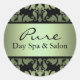 Este adesivo personalizável moderno apresenta uma cor damasco preta e verde sobre um fundo verde. Personalize-o adicionando seus detalhes na fonte de sua escolha! Os adesivos podem ser utilizados para todas as empresas alterando o texto.