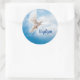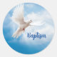 Este adesivo grande redondo é mostrado com uma impressão de pomba de batismo. Personalize este item ou comprar como está. Imagem do stock