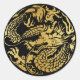 Adesivo Redondo Vinheta de dragão chinês preto e dourado