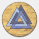 Legal adesivos com o clássico design de Valknut sobre o fundo do escudo de madeira Viking de lindamente meteorito.