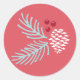 Adesivo Redondo Vinheta de férias redondas com pinheiro vermelho e