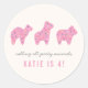 Esta bengala branca, que pode ser usada como uma foca de sacos de favores, apresenta um trio de doces biscoitos de animais em forma de camelo, girafa e leão. Cada biscoito é decorado com um glacé rosa brilhante e alguns borrifadores arco-íris. Por baixo da ilustração lúdica está o ditado "chamando todos os animais da festa", seguido do nome do aniversariante ou menina. Esta design era para a festa de aniversário de uma criança, mas eu acho que seria perfeita para um chá de fraldas também.