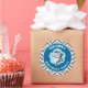Adesivo Redondo Vinheta de Festa de aniversário de tubarão-branco