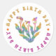 Adesivo Redondo vinheta de flores do dia do nascimento