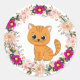 Adesivo Redondo Vinheta de Gato Flor