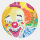 Vinheta do Partido Palhaço. Este adesivo é decorado com uma pintura de um palhaço risonho vestindo um chapéu de bobo e segurando um balão em forma de coração vermelho. Um adesivo de excelente.