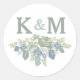 Adesivo Redondo Vinheta de Iniciais Florais de Casamento com Buquê