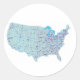Adesivo Redondo Vinheta de Mapa Azul EUA