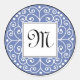 Adesivo Redondo Vinheta De Monograma Azul E Preto