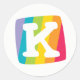 Etiquetas tipográficas de letra K em cores coloridas do arco-íris. Leituras: K. ideal para crianças com o K inicial. Desenvolvido exclusivamente por Sarah Trett para www.mylittleeden.com