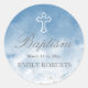 muito elegante adesivo de eventos religiosos com fundo de aquarela azul-céu e uma combinação de fonte e serif elegantes para todas as informações. Verificar em nossa loja mais produtos correspondentes desta coleção