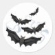 Um adesivo grande em forma redonda mostrado num impressão de morcegos de Halloween. Personalize este item ou comprar como está.