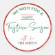 Preencha seus presentes e pacotes de Natal com uma etiqueta de círculo de Feriados Felizes personalizada. Este adesivo de férias festivo inclui um design moderno vermelho e verde de férias com letra na moda e efeito de folha vermelha, perfeito para usar no Natal, Hanukkah ou Ano Novo!