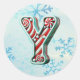 Adicione um toque festivo aos seus presentes de férias e decoração com estes adesivos redondos com a letra "Y" num design de cana doce alegre. Perfeito para personalizar presentes, cartas e favoritos para festas! Personalize esta design com um monograma, nome ou foto. © Copyright 2024 P.D., Padrões e pinturas de férias e gráficos. Todos os direitos reservados.