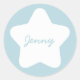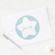 Um adesivo redondo personalizável com estrelas brancas e bonitas sobre fundo pastel azul-bebê. Os adesivos são personalizáveis para que você possa editá-los com seu próprio nome. A cor de fundo também é personalizável e pode ser alterada para seu gosto.
