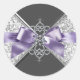 Adesivo Redondo Vinheta de Ouros Brancos Roxos de Lavanda Elegante