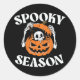Adesivo Redondo Vinheta de Pumpkin Skeleton Season Spookie