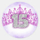 Adesivo Redondo Vinheta de Quinceanera de Tiara, Roxo e Rosa