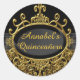 Adesivo Redondo Vinheta de Quinceanera, Dourada e Preta, Elegante